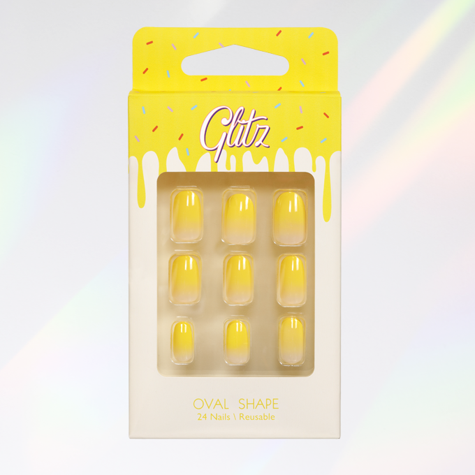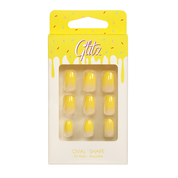 أظافر صناعية لصق ذاتي أصفر شكل بيضاوي من جلتز