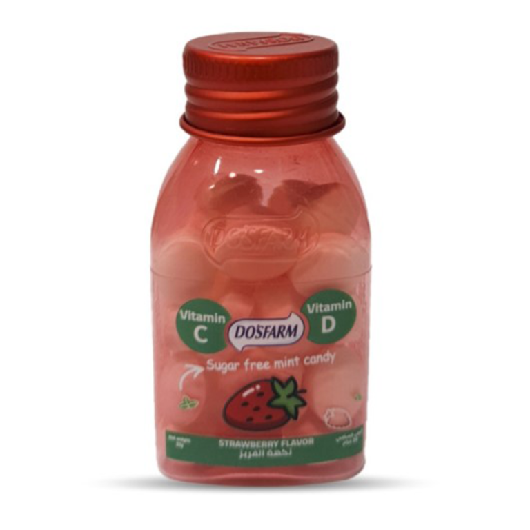 حلوى خالية من السكر بفيتامين ج و د بنكهة الفراولة من دوسفارم – 22ج