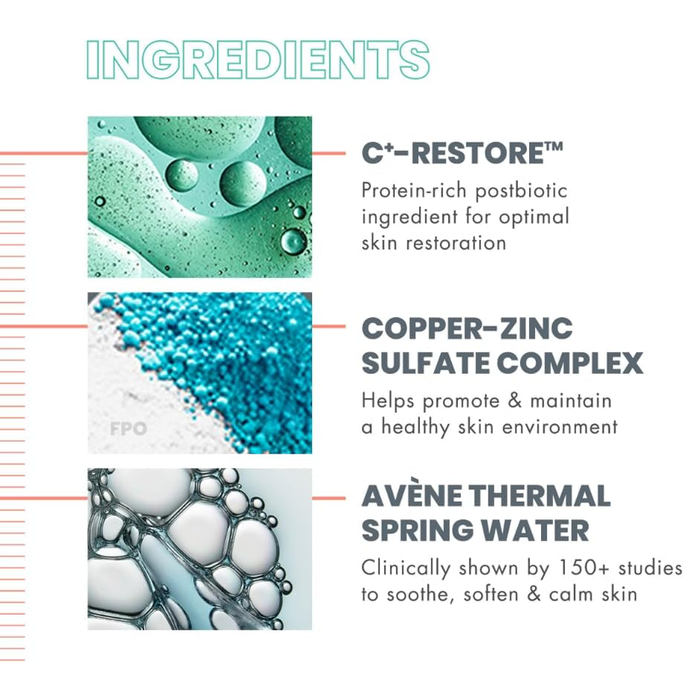 مياه الينابيع الحرارية أفين، ثلاثي جليسريد الكابريليك/الكابريك، زيت معدني/زيت معدني، جلسرين، زيت نباتي مهدرج، أكسيد الزنك، بروبيلين جليكول، بولي كلوجيريل-2-سيسكوي إيزوستيرات، بولي إيثيلين جليكول-22/دوديسيل جليكول كوبوليمر، ستيرات الألومنيوم، فلتر تخمير أكوافيلوس دولوميا، أرجينين، شمع العسل/سير دابيل، كبريتات النحاس، ستيرات المغنيسيوم، شمع ميكروكريستالين/زير ميكروكريستالين، تروميثامين، كبريتات الزنك.