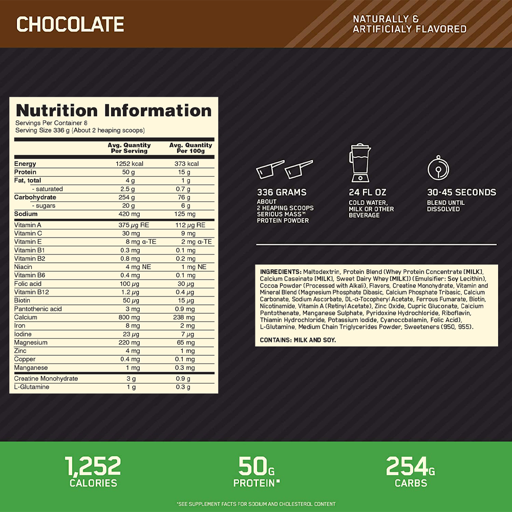 أوبتيموم نيوترشن سيرياس ماس مسحوق بنكهة الشوكولاتة – 6 باوند