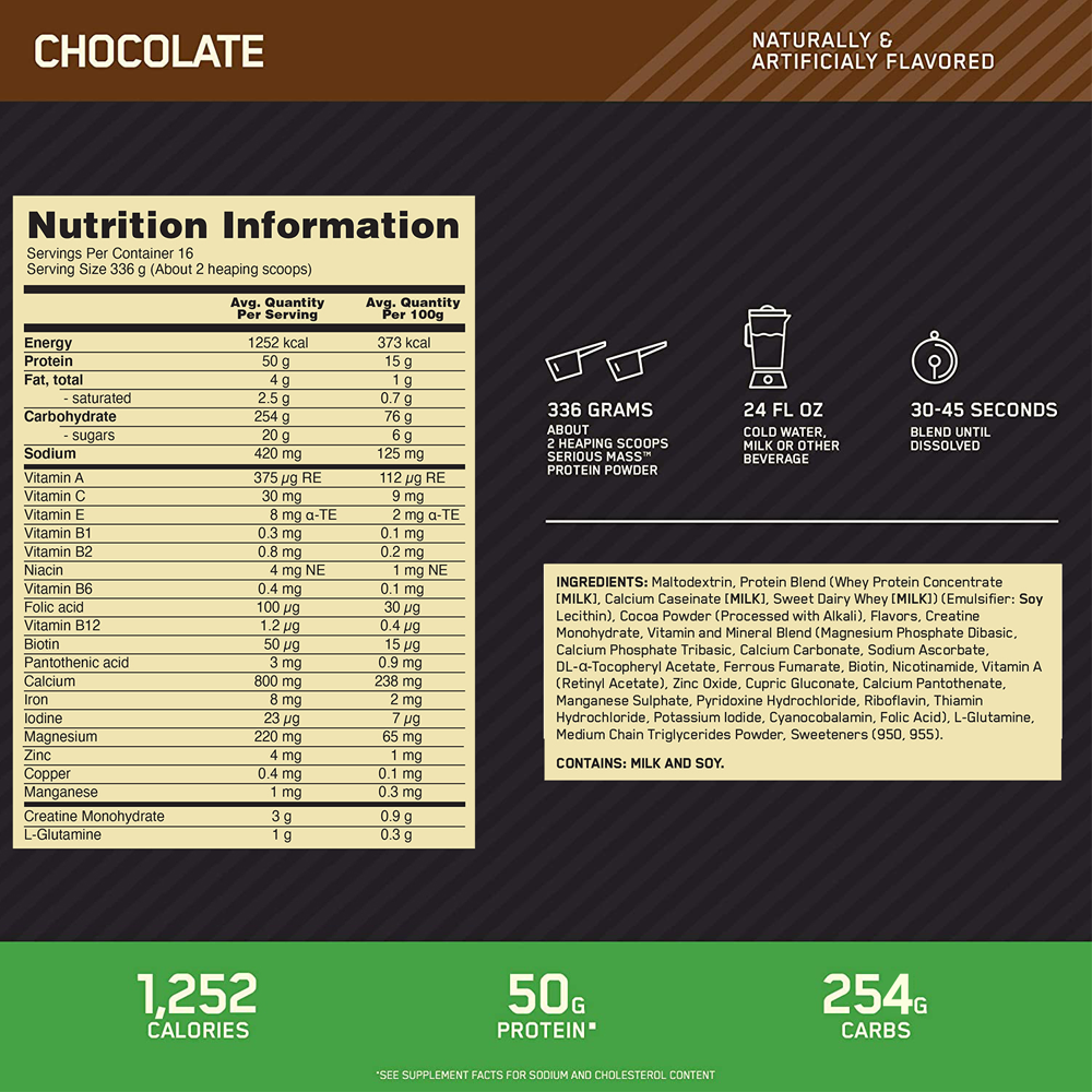 أوبتيموم نيوترشن سيرياس ماس مسحوق بنكهة الشوكولاتة – 12 باوند