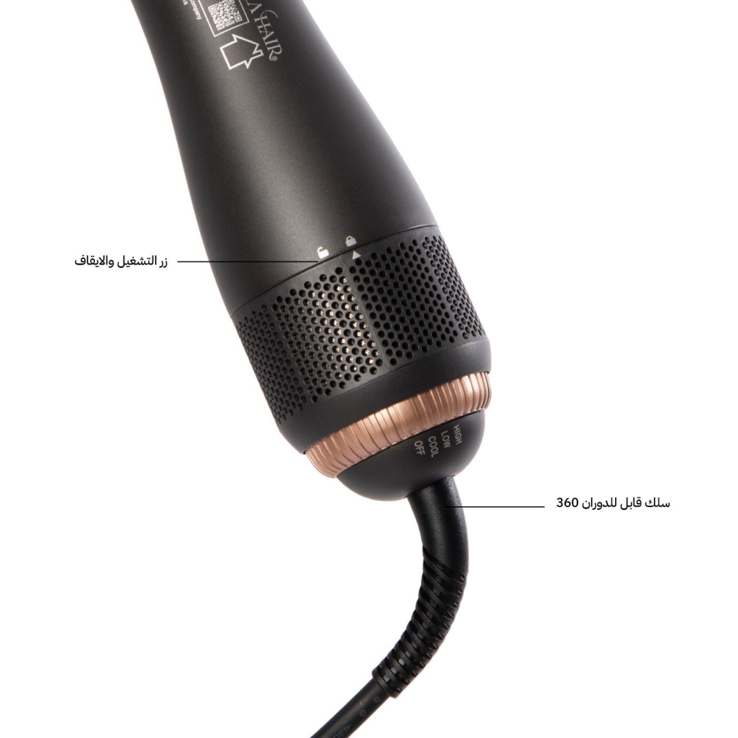 - تتميز فرشاة سشوار بتقنية الايونات التي تجعل شعرك ناعما بلا تطاير.