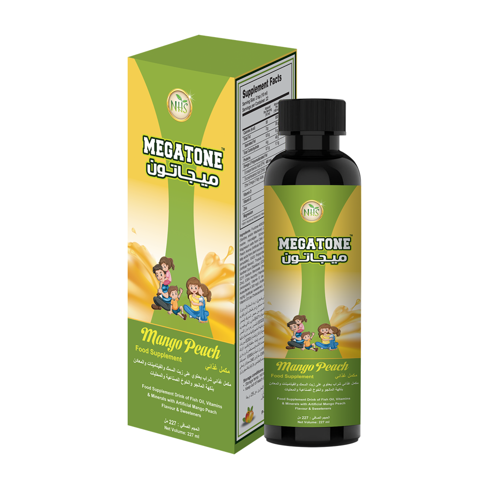 عزّز صحة طفلك مع ميجاتون، المكمل الغذائي السائل المميز المصمم لدعم النمو والصحة العامة.