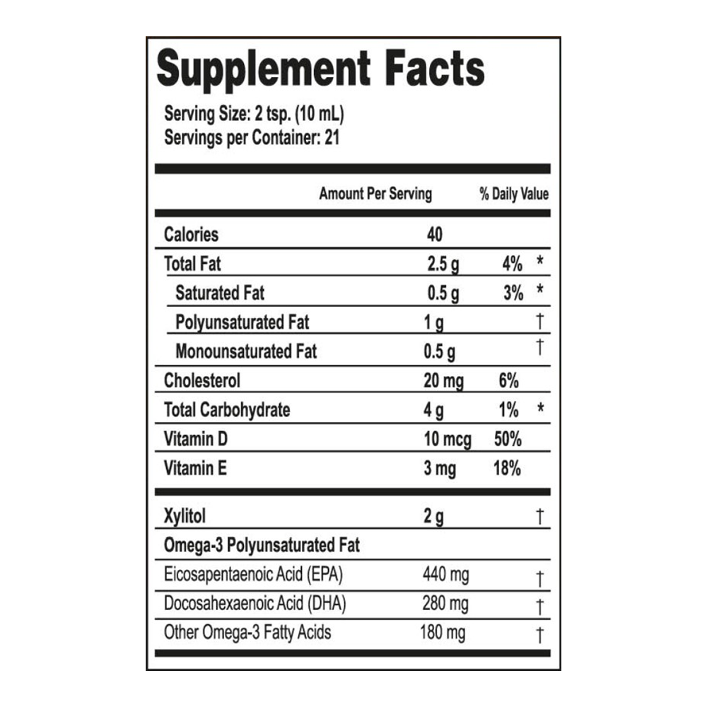 الطاقة: 55 سعرة حرارية، إجمالي الدهون: 3 جم، الدهون المشبعة: 0.5 جم، الأحماض الدهنية المتعددة غير المشبعة بما في ذلك حمض إيكوسابنتاينويك (EPA): 0.4 جم، حمض دوكوساهيكسانويك (VHA): 0.6 جم، أحماض أوميغا 3 الدهنية الأخرى: 180 مجم، دهن، دهن من زيت السمك: 0.9 جم، دهن من زيت السمك: الزنك: 7 ملغ، والمغنيسيوم: 65 ملغ.