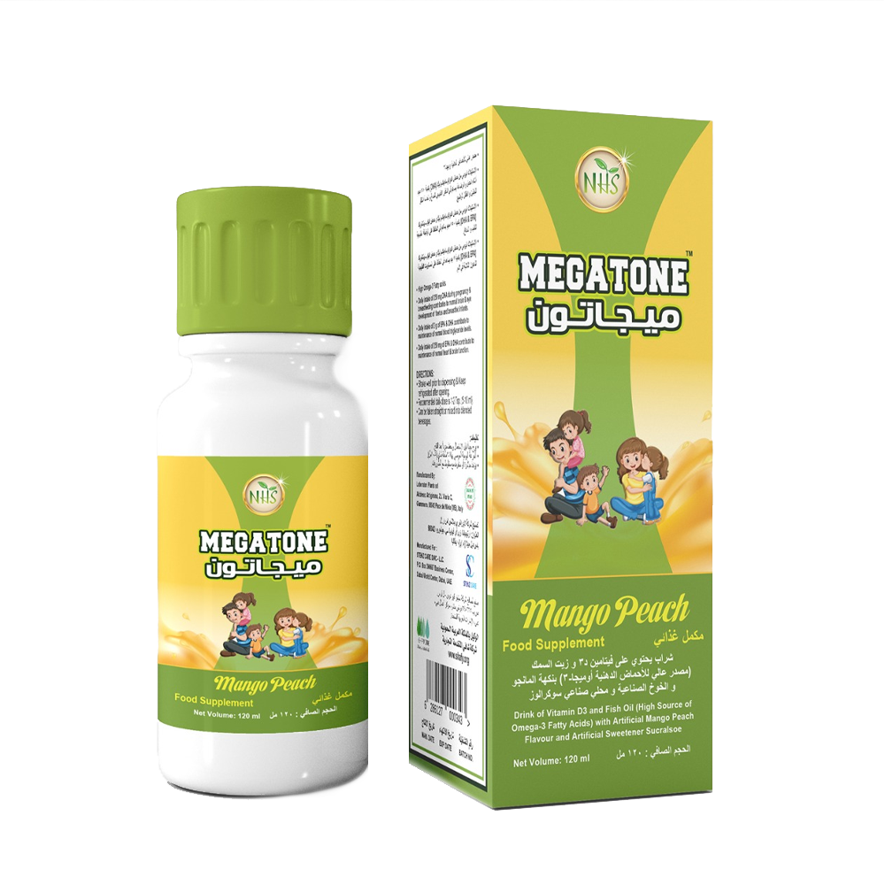 إن إتش إس ميغا تون اوميجا 3 بالمانجو والخوخ – 120 مل