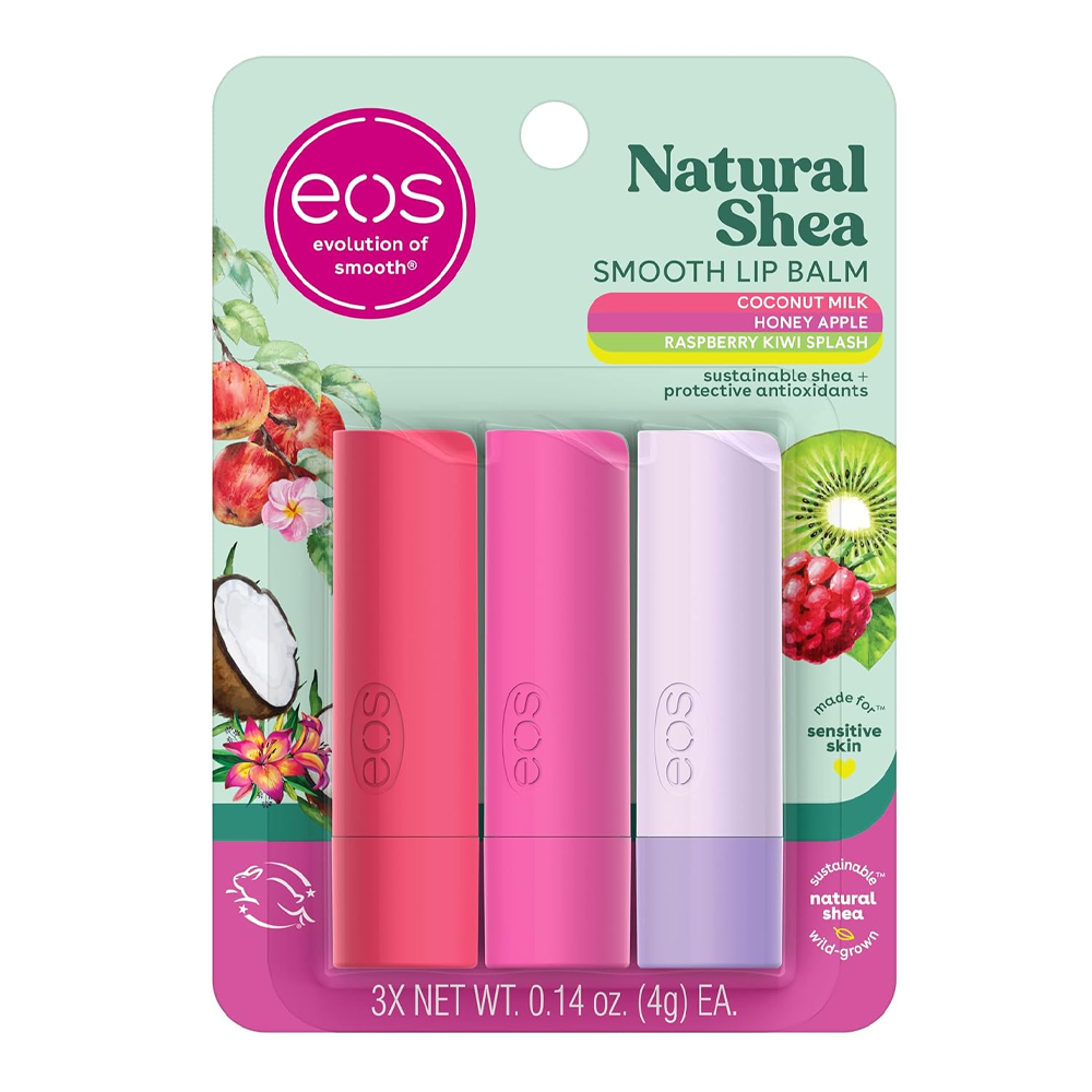 إي أو إس مرطب الشفاه الطبيعي 100% بزبدة الشيا – 3 قطع