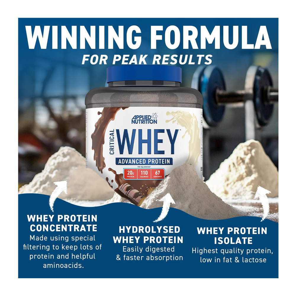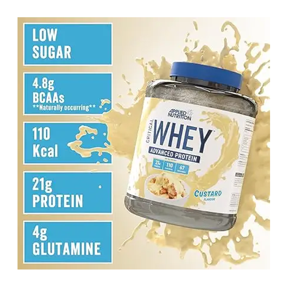 بروتين مصل اللبن من أبلايد نيوترشن بنكهة الكاسترد مصنوع من مزيج فريد من بروتين مصل اللبن المركز والمعزول والمتحلل.