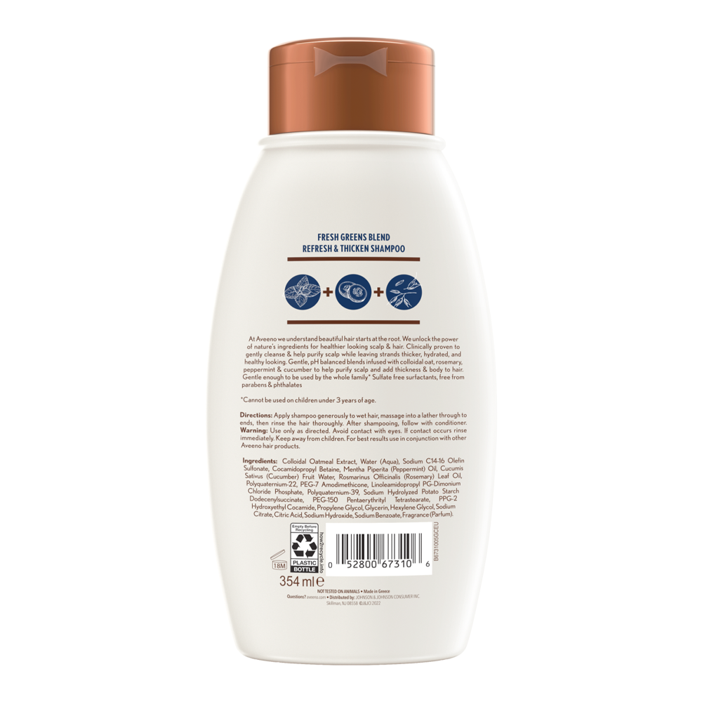 نظفي وأنعشي شعرك مع شامبو افينو فريش جرينز لتكثيف وتجديد الشعر.