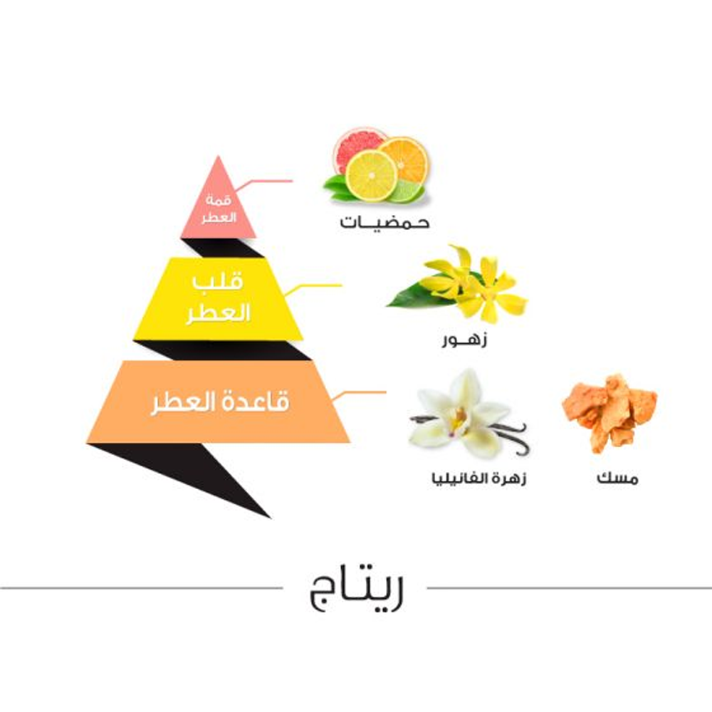 - مكونات القاعدة: زهرة الفانيليا والمسك.