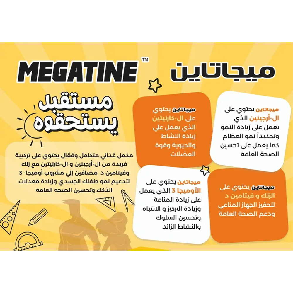 يحتوي هذا المكمل المميز على أوميغا 3، فيتامين د، الزنك، المغنيسيوم، إل-كارنيتين، والأرجينين، لدعم المناعة وتعزيز النمو الذهني والبصري.