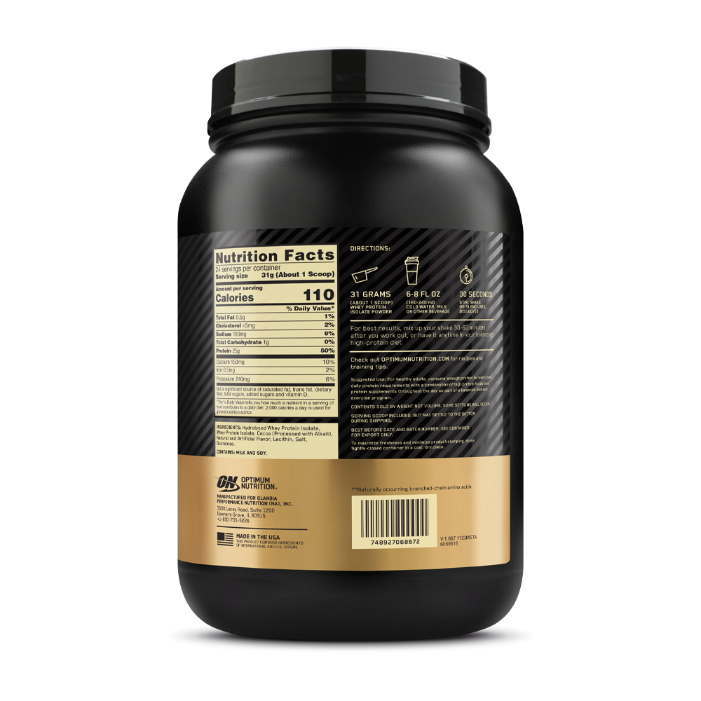 اكتشف أوبتيموم جولد ستاندرد 100% ايزوليت بنكهة شوكولاتة بليس، المصمم لأولئك الذين يبحثون عن أنقى أنواع البروتين لتعافي العضلات ونموها.