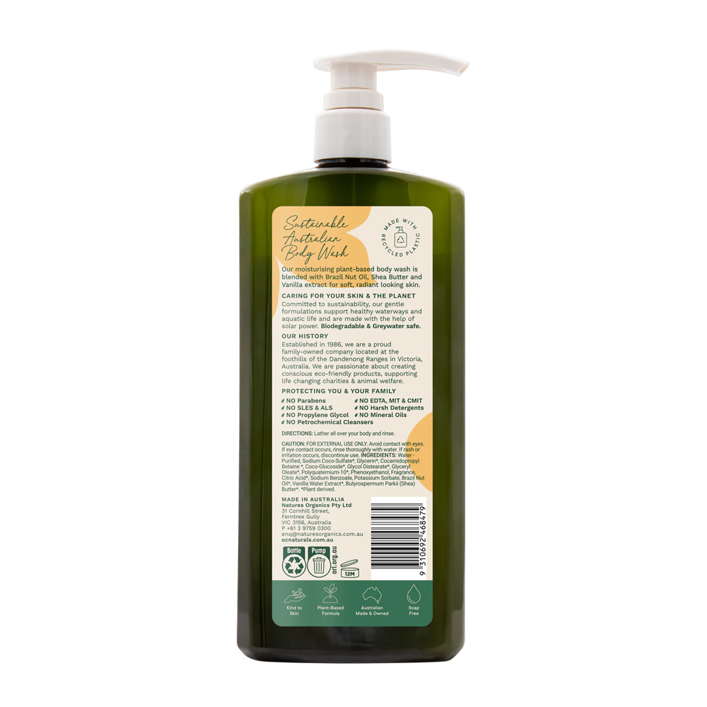 غسول الجسم المرطب بتركيبة طبيعية غنية بالفانيلا اللذيذ وزبدة الشيا المرطبة.يمنحكِ تجربة استحمام فاخرة ورائحة منعشة تدوم طويلاً. صُمم لتنظيف البشرة بفعالية بينما يعتني بها، يرطبها بعمق ويجعلها أكثر نعومة وإشراقًا. تركيبته الخفيفة والخالية من المواد الضارة توفر لبشرتكِ العناية التي تستحقها.امنحي بشرتكِ الانتعاش الطبيعي الذي تحتاجه مع كل استخدام.