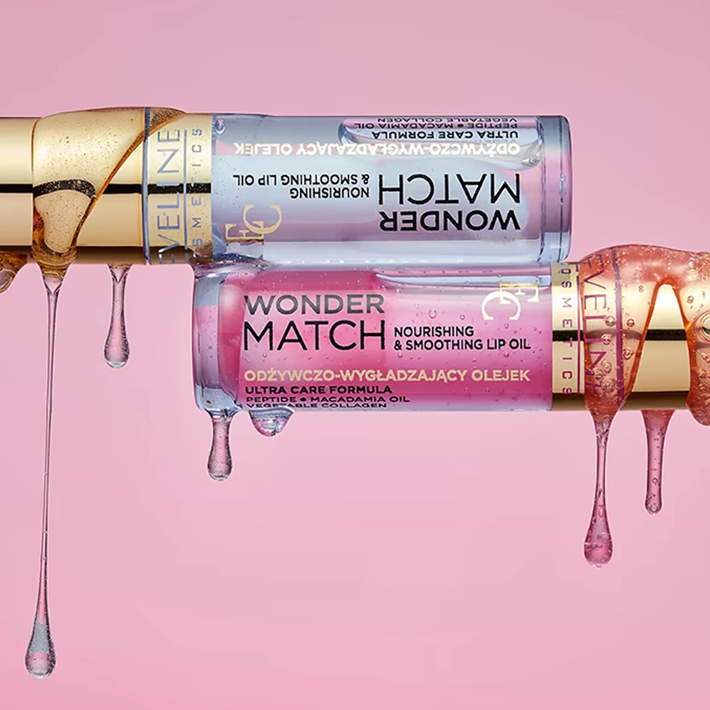 اكتشفي التوازن المثالي بين العناية الفائقة والمظهر الجذاب مع زيت الشفاه من مجموعة وندر ماتش من إيفلين.