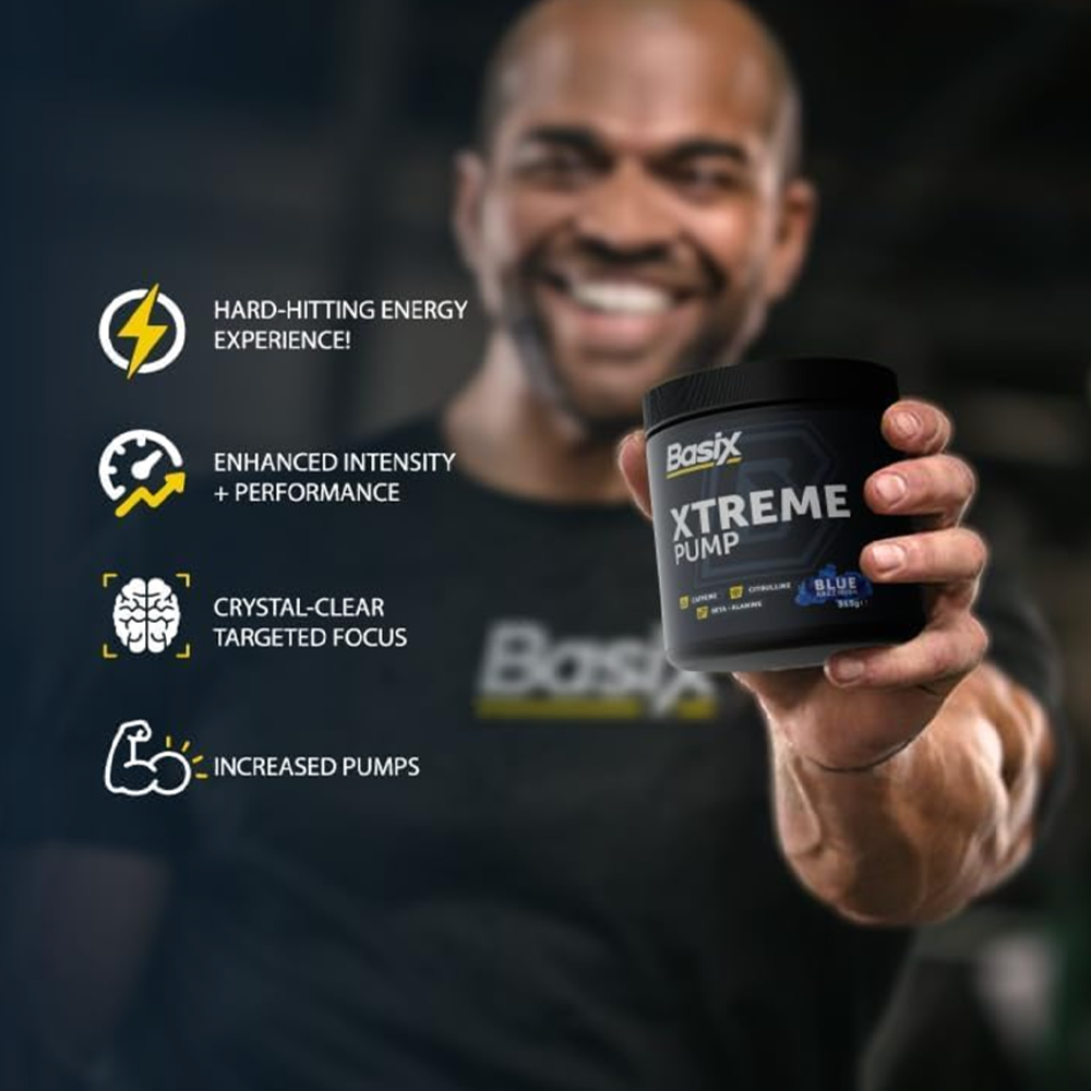 مسحوق باسِكس إكستريم بامب بنكهة بلو راز راش مكملًا قويًا قبل التمرين