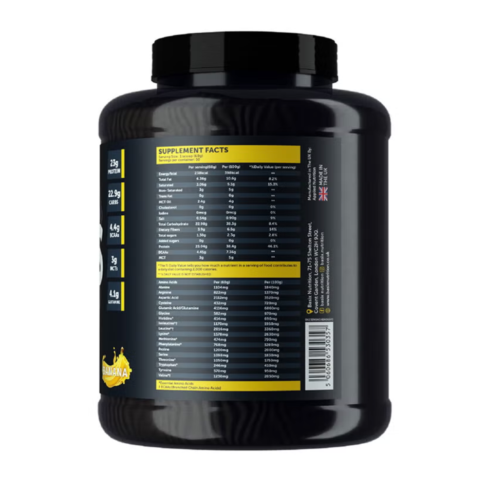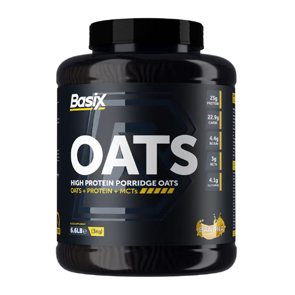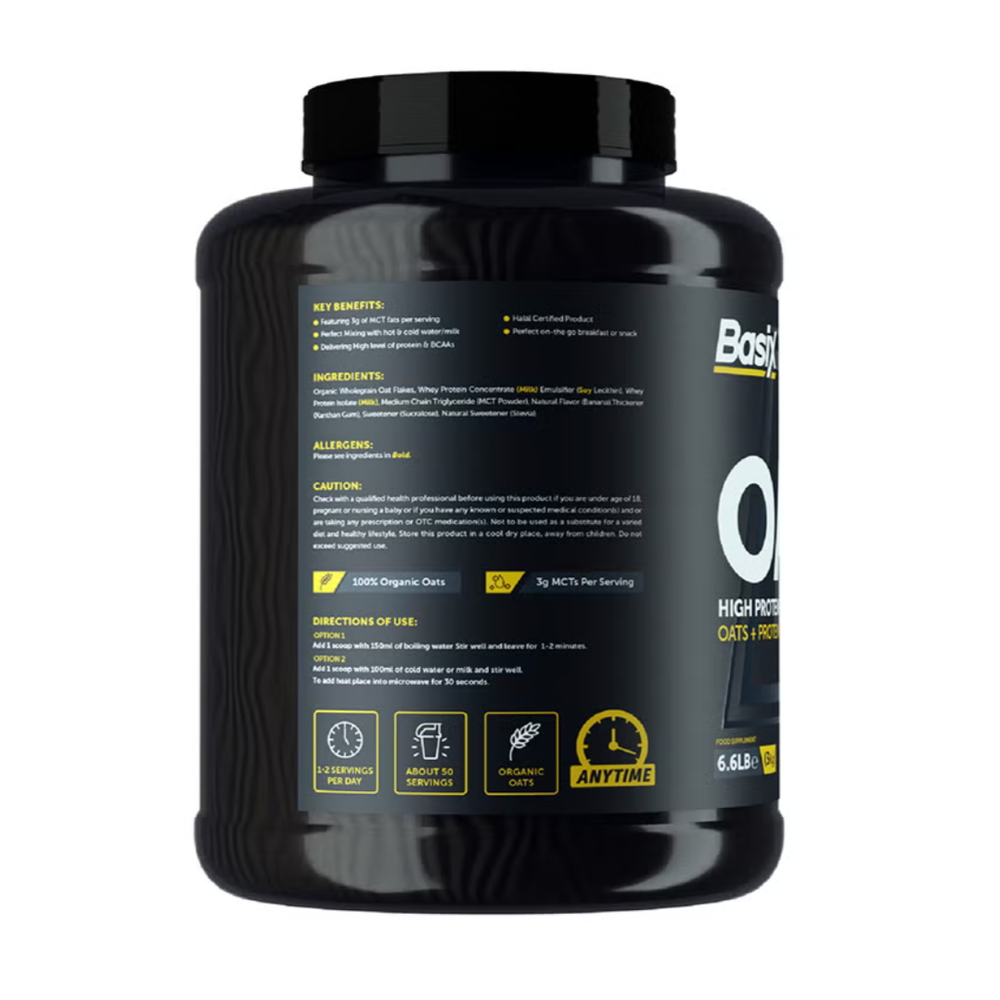 شوفان باسيكس يجمع بين 23 جم من بروتين مصل الحليب المركز والمعزول لدعم نمو العضلات وقوتها والحفاظ عليها.