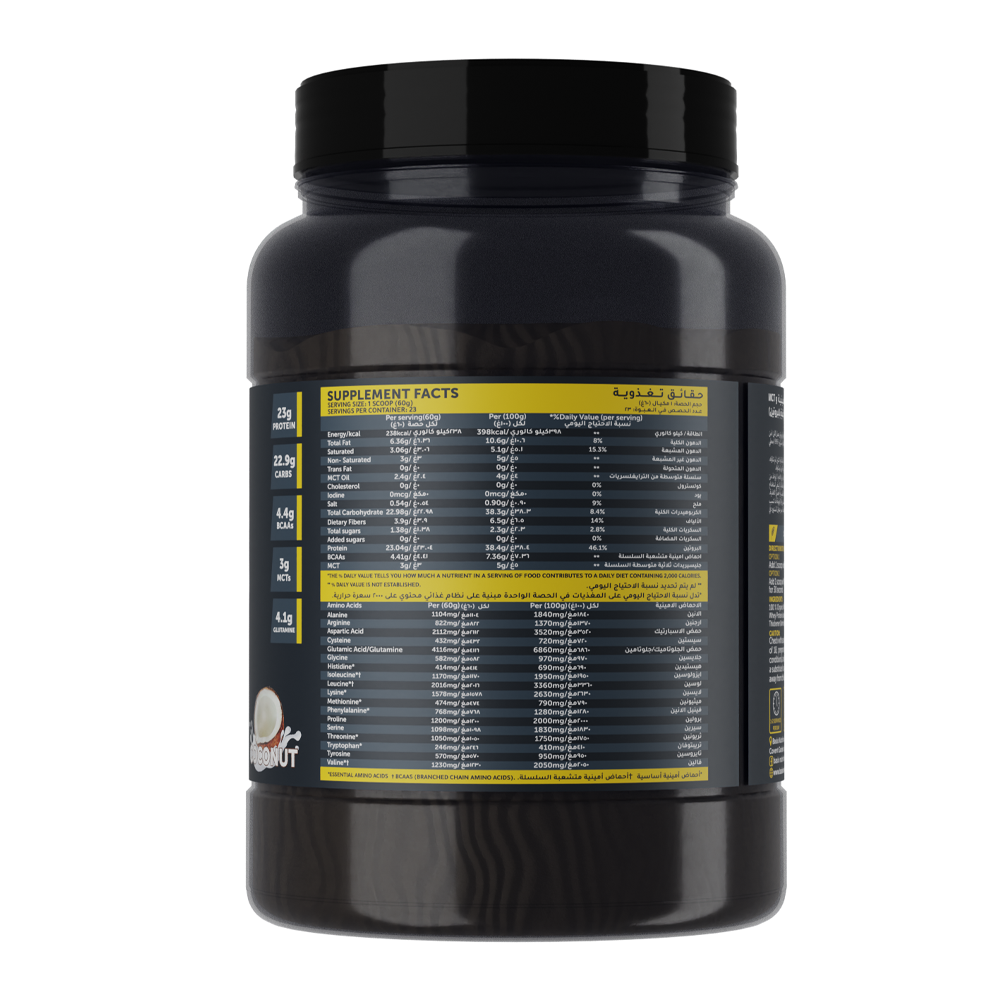 كما يحتوي على زيت MCT، وهو مصدر صحي للدهون يعزز التمثيل الغذائي ويعمل كمصدر فعال للطاقة.