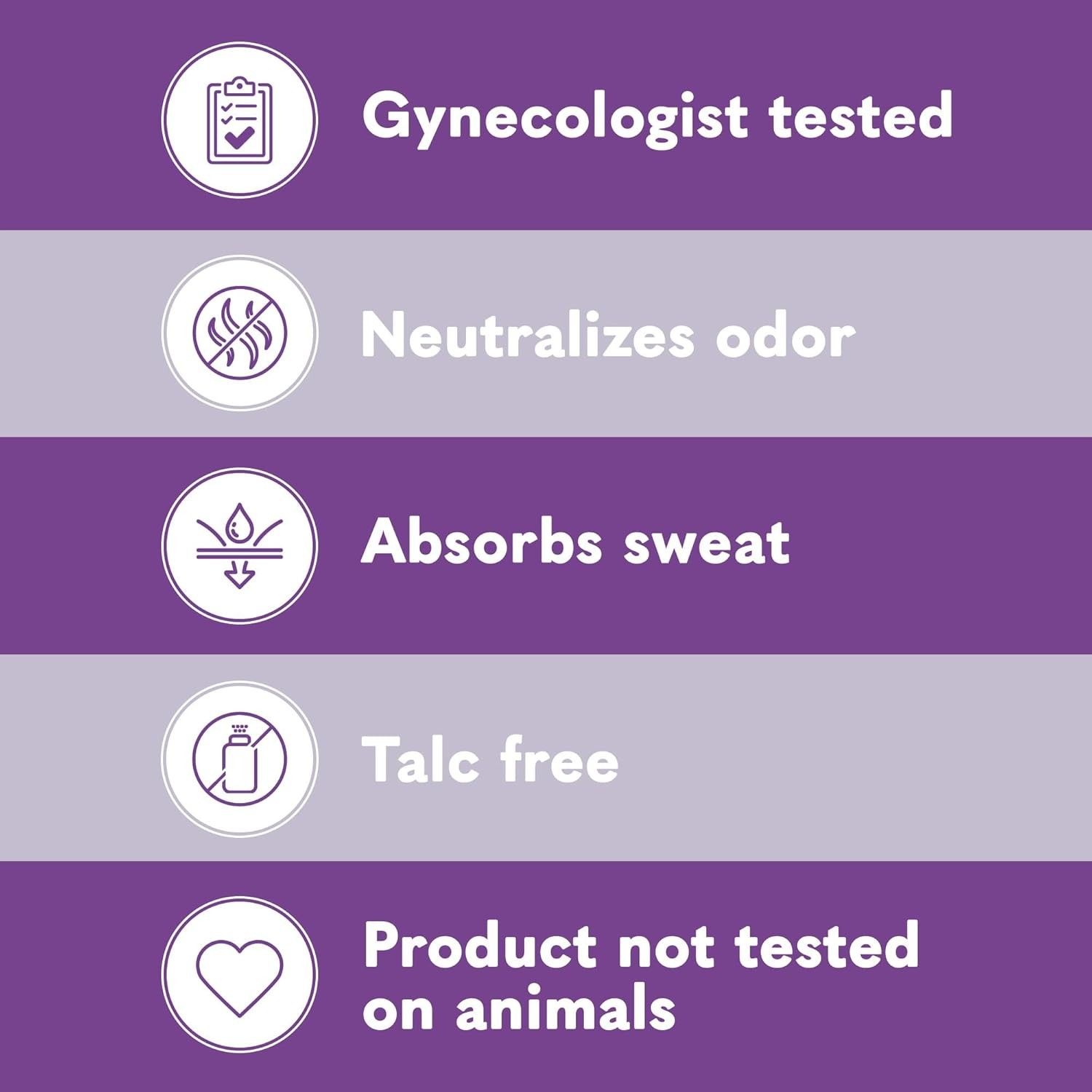 يعمل على إزاله التعرق و الروائح الغير مرغوب بها وبتركيبة آمنة لعناية دون تهيج.