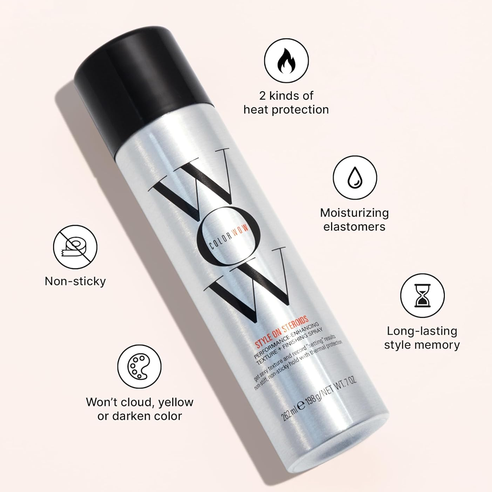 أضيفي لمسة حيوية على الشعر المصبوغ ببخاخ ستايل اون ستيرويدز لتحسين ملمس الشعر من كولور واو.