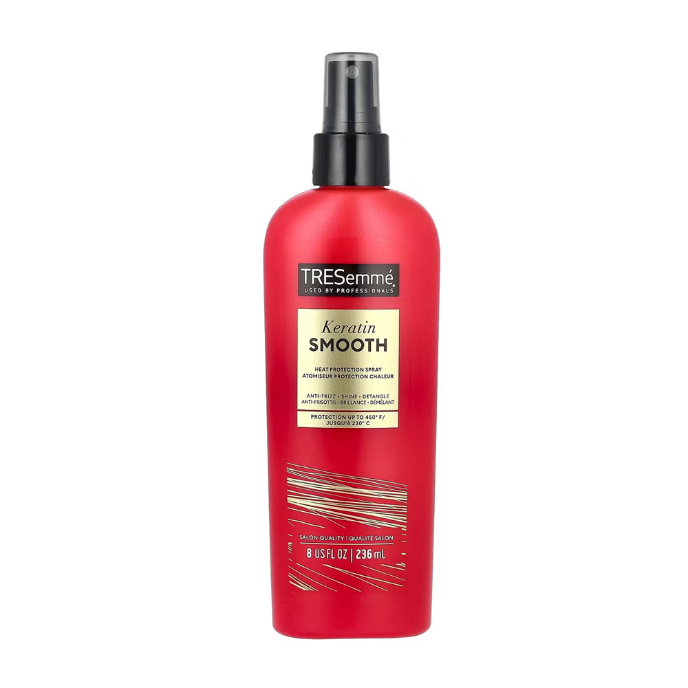 يساعد بخاخ الحماية من الحرارة الكيراتين على حماية شعرك من الآثار الضارة للتصفيف بالحرارة وزيادة لمعانه.بخاخ الكيراتين من تريسمي الممزوج بزيت المارولا من إفريقيا  يمنحك شعر ناعم و يفك التشابك و يعزز اللمعان ويقلل من التساقط.