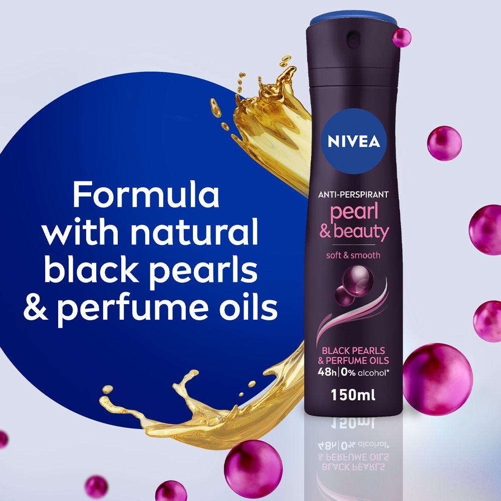 بخاخ مزيل العرق بيرل آند بيوتي بخلاصة اللؤلؤ الأسود للنساء من نيفيا – 150مل