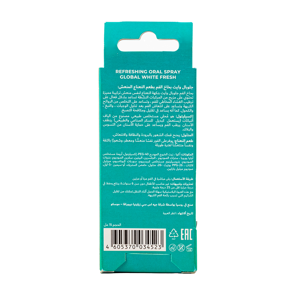 ودّع رائحة النفس الكريهة مع بخاخ جلوبال وايت المعطر للفم.