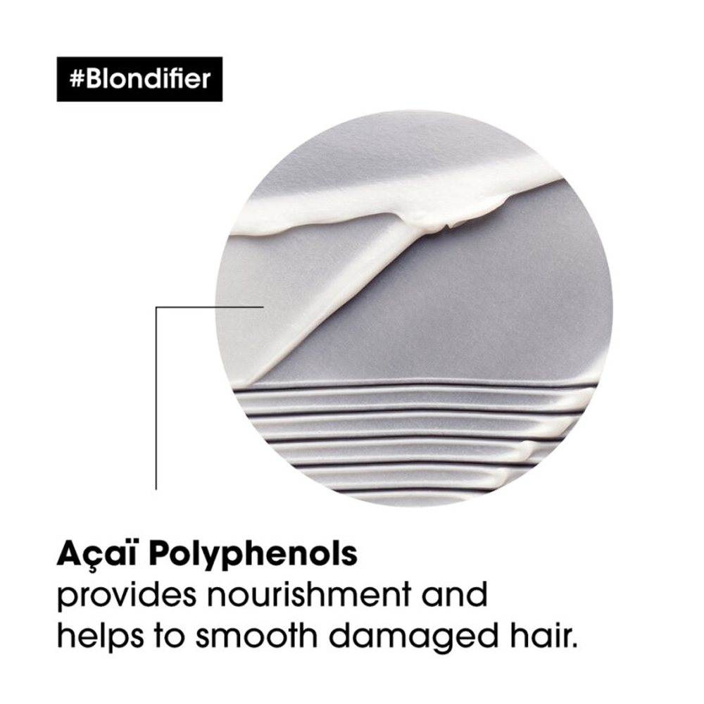 بلسم للشعر الأشقر يغطي الشعر بطبقة خفيفة لامعة وناعمة.تركيبة احترافية غنية بمستخلص توت الآساي الذي يحتوي على مادة البوليفينول. يساعد هذا البلسم خفيف الوزن على تعزيز التألق للشعر الأشقر.