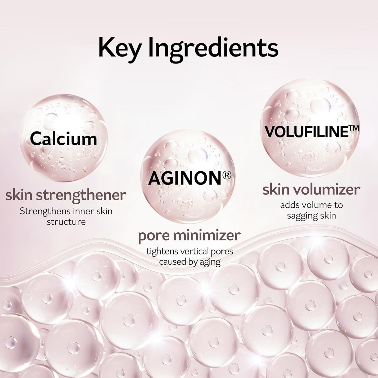 ماء الكولاجين، ثنائي بنزوات البروبيلين جليكول، كحول بولي فينيل، ماء، بالميتات إيثيل هكسيل، جلسرين، 1،2-هيكسانيديول، ثلاثي جليسريد الكابريليك/الكابريك، هيدروكسي إيثيل يوريا، ثنائي بروبيلين جليكول، ستيرات الجلسريل، سوربيتان سيسكوي أوليات، عطر، هيدروكسي أسيتوفينون، أكريلات/C10-30 ألكيل أكريلات كروسبوليمر، أرجينين، مستخلص لحاء الصنوبر، أسيتات الصوديوم، ثنائي صوديوم EDTA، بوتيلين جليكول، كابريليل جليكول، أتيلوكولاجين، غلوكونات الكالسيوم، إيلاستين مُحلل، مستخلص فاكهة غاردينيا فلوريدا، ديكسترين، جلوتاثيون، هيالورونات الصوديوم، بولي إيزوبوتين مهدرج، سيانوكوبالامين، سينانشوم أتراتوم. مستخلص، مستخلص أوراق ثامنوليا فيرميكولاريس، مستخلص ثمار برونوس أميجدالوس دولسيس (اللوز الحلو)، مستخلص لحاء تابيبويا إمبيتيجينوسا، مستخلص فطر تريميلا فوسيفورميس (الفطر)، مستخلص جذر أنيمارينا أسفوديلويدس، أسيتيل هيكسابيبتيد-8، توكوفيرول