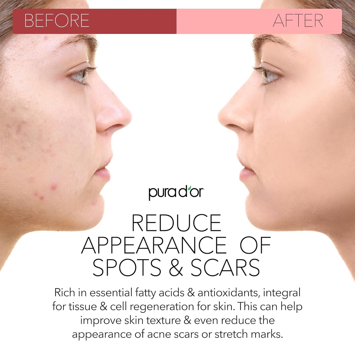 زيت بذور الورد من بيورا دور معتمد من USDA، 100% طبيعي ومغذى بالأحماض الدهنية الأساسية (أوميغا 3، 6، 9)، كما يحتوي على كميات كبيرة من حمض الريتينول الطبيعي (فيتامين A) وفيتامين C.
