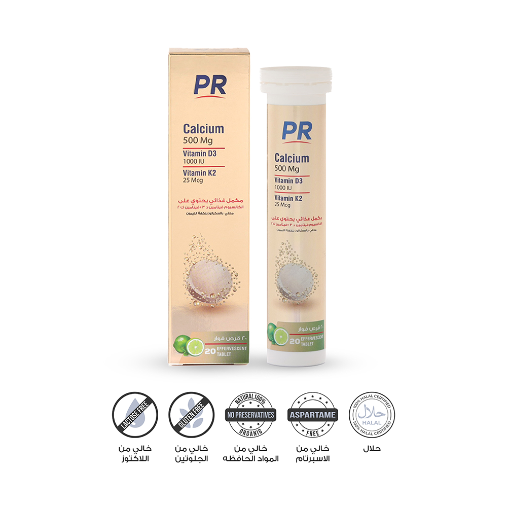 بيور كالسيوم وفيتامين د3 وفيتامين ك2 – 20 قرص فوار