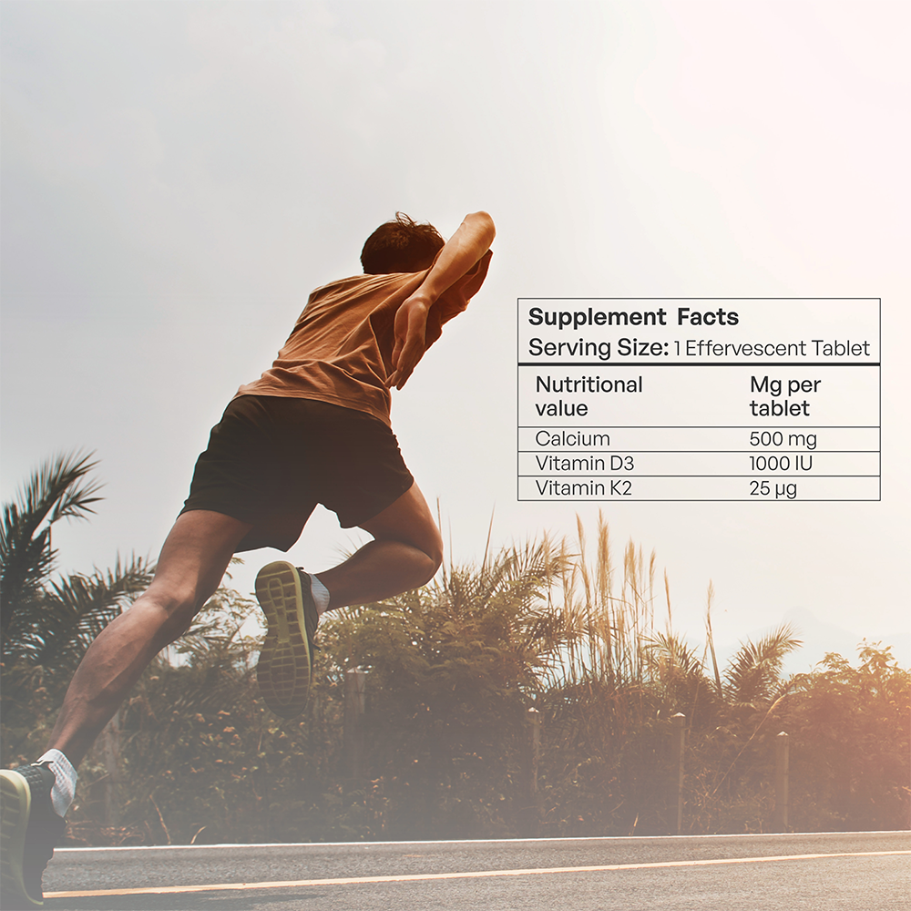 معزز بالكالسيوم 500 ملجم، فيتامين د3 1000 وحدة دولية فيتامين ك2 25 ميكروجرام.