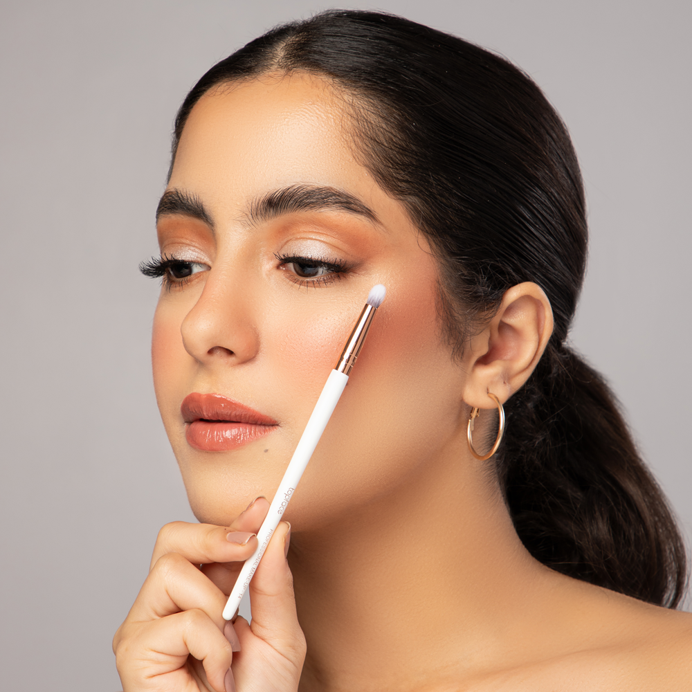 فرشاة دمج بشعيرات قصيرة وكثيفة، مصممة لدمج وتنعيم كحل العين.مناسبة لدمج كحل العين على خط الرموش السفلي والعلوي للحصول على مظهر سموكي.مناسبة أيضا لوضع ظلال العيون والإضاءة في زوايا العين الداخلية.