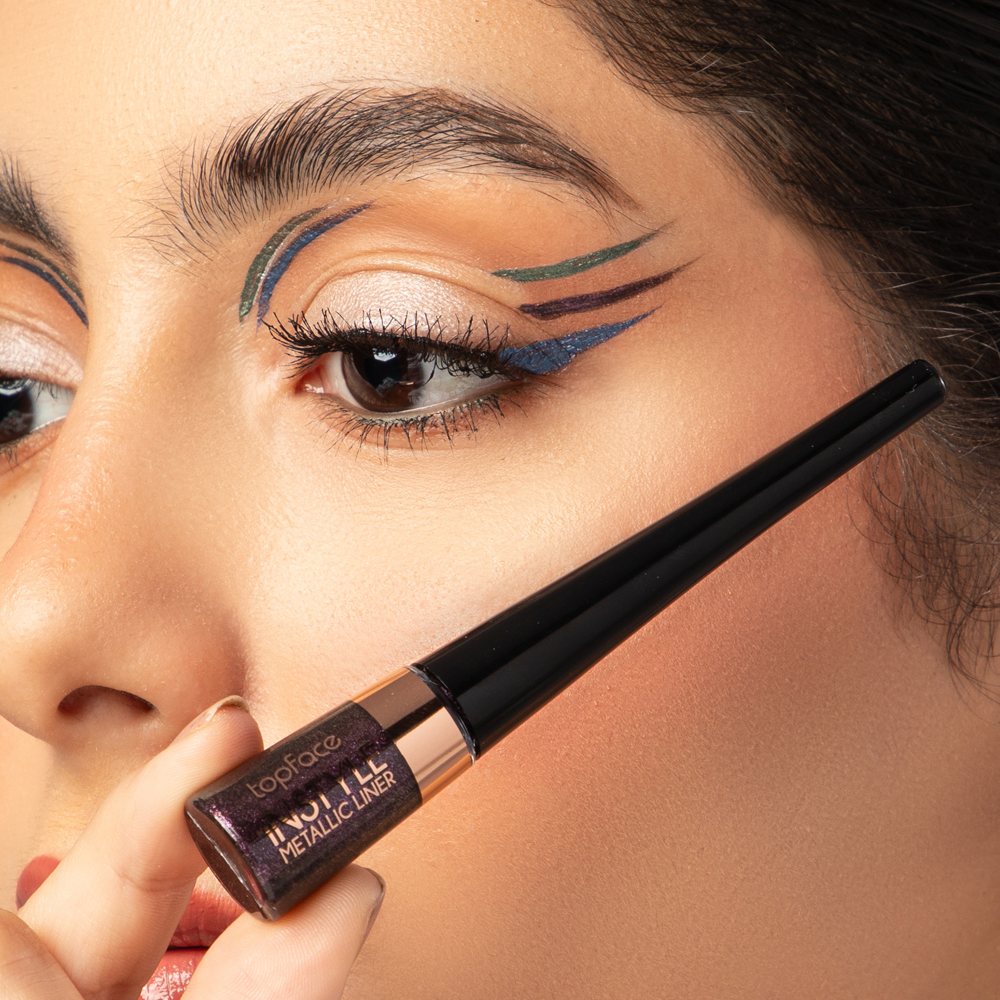 كحل انستايل ميتاليك من توب فيس يمنحك اطلالة مكياج عصرية وجذابة.بألوان الميتاليك الرائعة يعطي مظهرا ساحرا بثبات يدوم طوال اليوم.كحل سائل بتغطية ولون غني وجذاب، وفرشاة بطرف دقيق سهل الاستخدام.