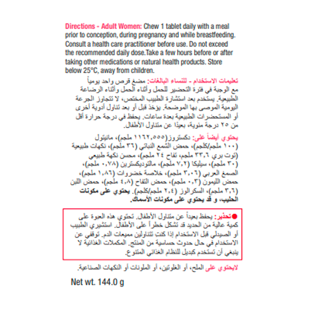 • يكمل احتياج المرأة الحامل من الفيتامينات 100%