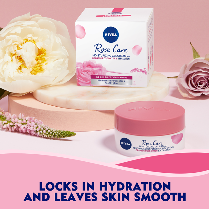 جل كريم روز كير مرطب للوجه بماء الورد العضوي و الهيالورون – 50مل