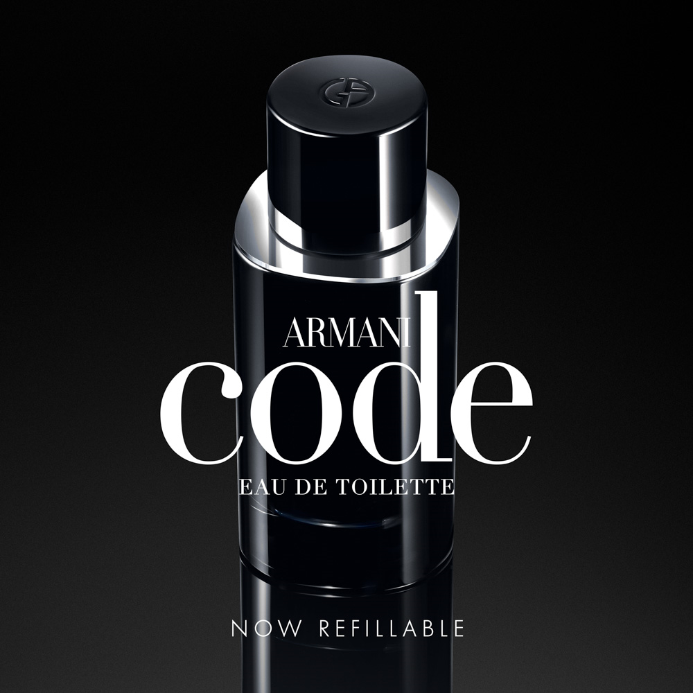 عطر أرماني كود للرجال تم إصداره في عام 2023، يتميز بعبوة قابلة لإعادة التعبئة.