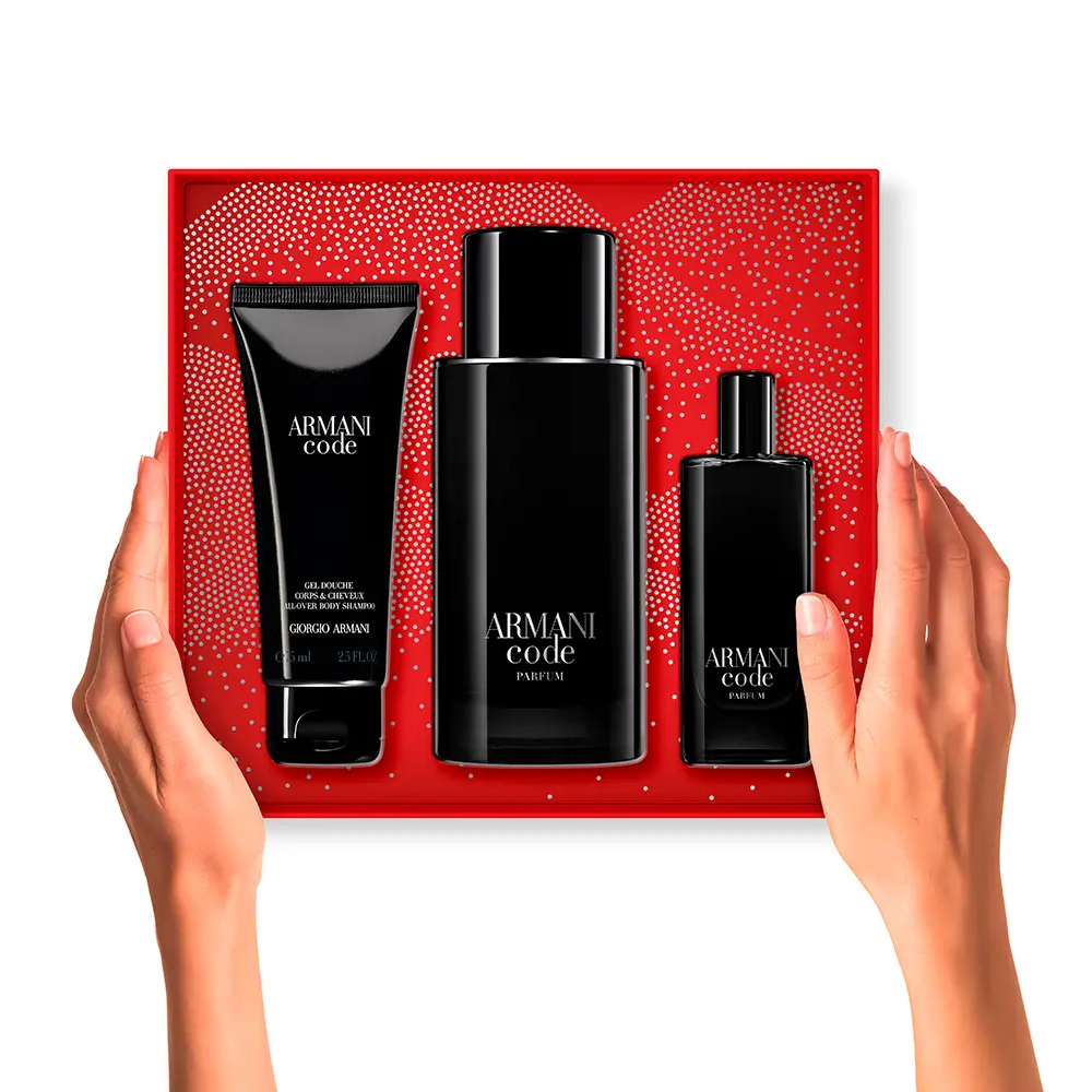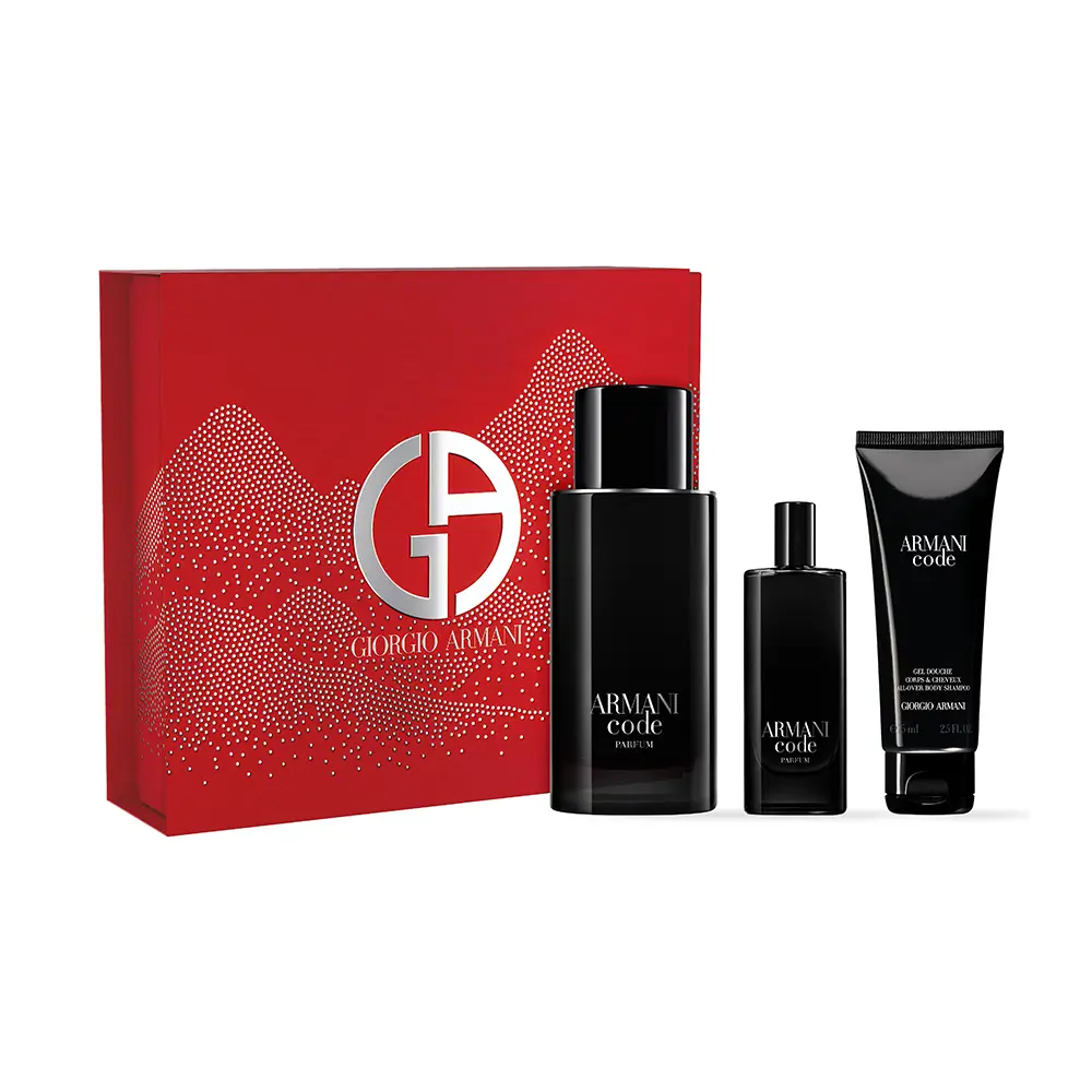 مجموعة أرماني كود للرجال تحتوي على زجاجة بحجم 125 مل، زجاجة صغيرة بحجم 15 مل، وجل استحمام بحجم 75 مل، وهي من أرقى إبداعات جورجيو أرماني.