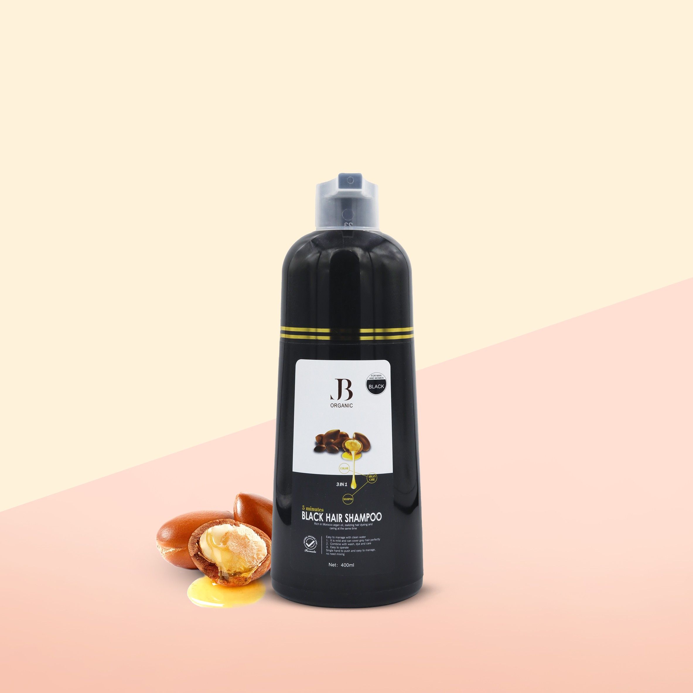 جي بي اورجانيك شامبو صبغة الشيب بزيت الارغان اللون الأسود 3 في1 – 400مل