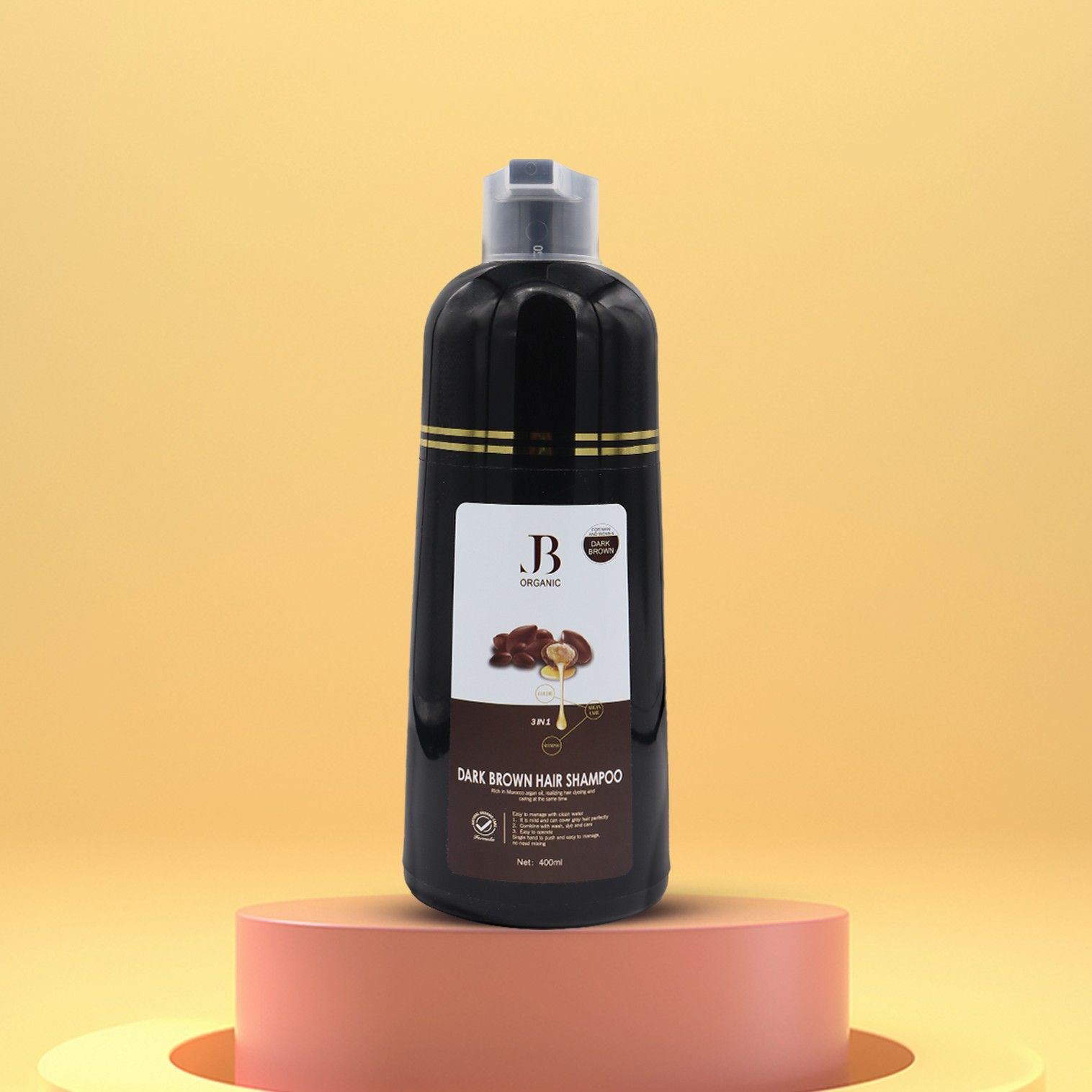 جي بي اورجانيك شامبو صبغة الشيب بزيت الارغان اللون بني غامق 3 في1 – 400مل