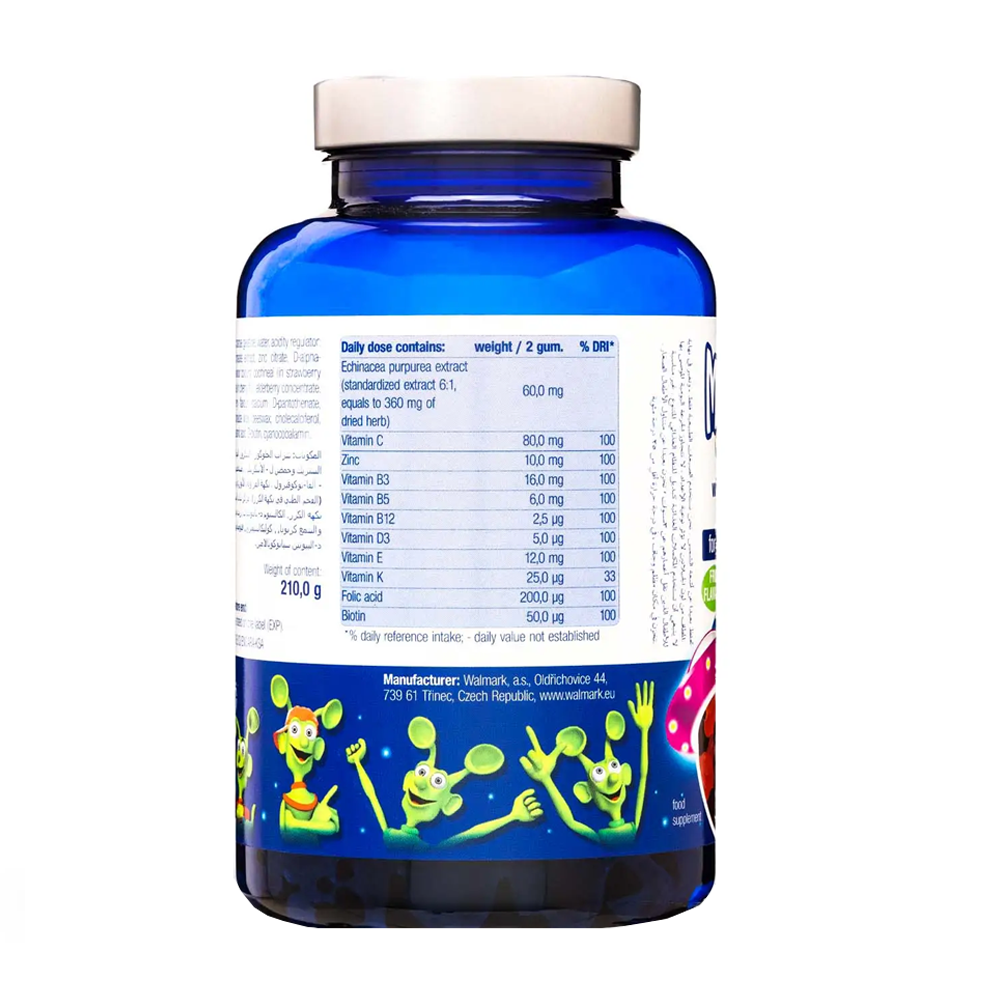 منتج جيلاتين لذيذ يحتوي على جرعة يومية موصى بها من الفيتامينات والمعادن الأساسية للنمو الفسيولوجي السليم وتطور الأطفال.