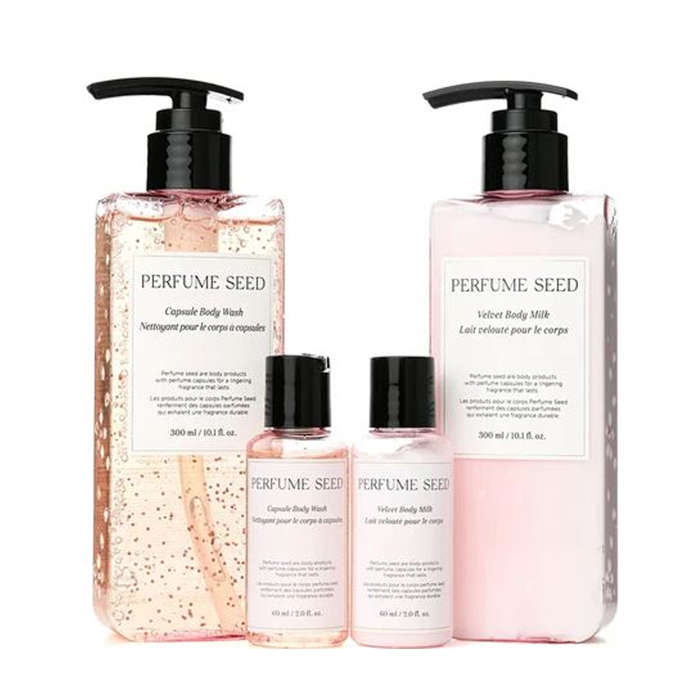 تتضمن هذه المجموعة لوشن للجسم وجل استحمام غني بجوهر بذور العطر، حيث يوفران الترطيب والتغذية مع عبير رقيق يضفي لمسة من الفخامة.