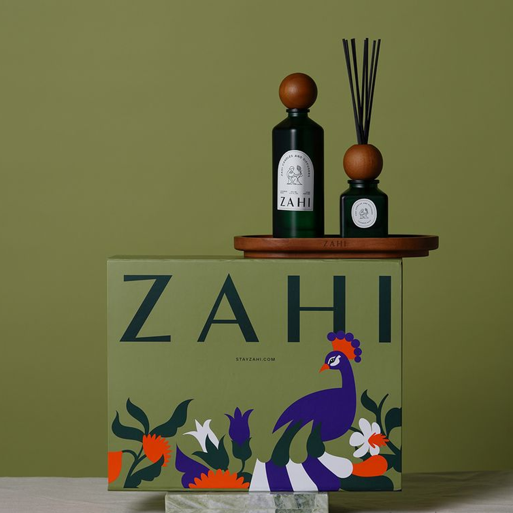 مجموعة فواحة زاهي كشمير مسك تحتوي على صينية أنيقة وعطر للمنزل بحجم 250مل وفوّاحة بحجم 100مل.