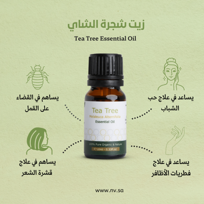 • يعتبر زيت شجرة الشاي من الزيوت المعروفة بفوائدها الصحية واسعة النطاق.