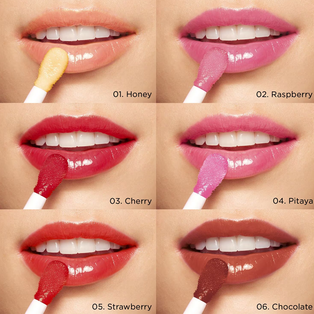 يستخدم فوق الروج أو تنت الشفاه لإضافة لمعان، أو يستخدم بمفرده لتعزيز الترطيب والتغذية مع لمسة لونية.