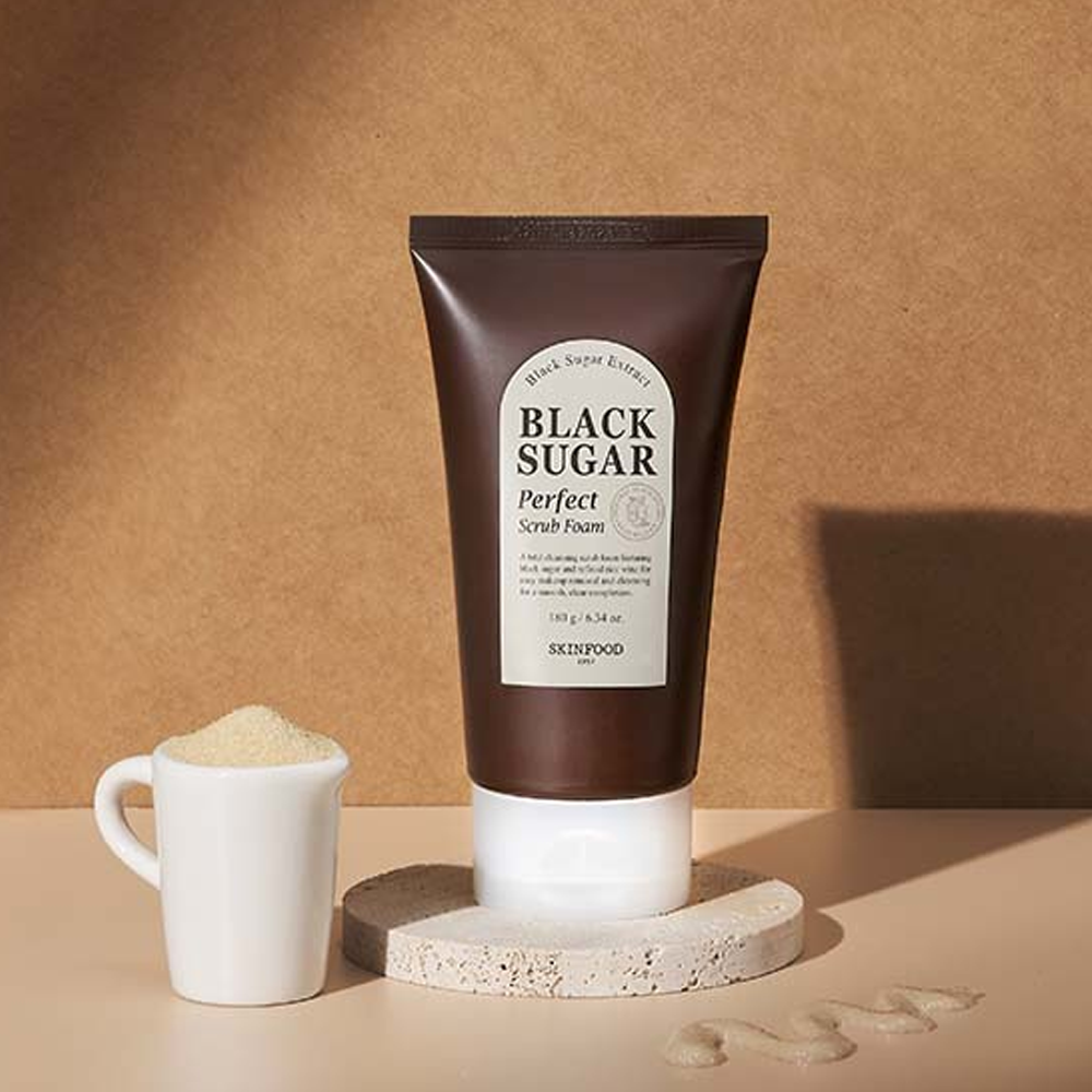 احصلي على تجربة تنظيف وتقشير متكامل مع مقشر السكر الأسود الرغوي من سكينفود.