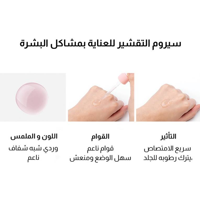 سيروم يقشر خلايا الجلد الميته ويمنح البشرة ترطيب عميق في وقت واحد و يجعل البشرة ناعمة و يحسين مرونة البشرة و إشراقها من خلال التفتيح وتحسين التجاعيد.