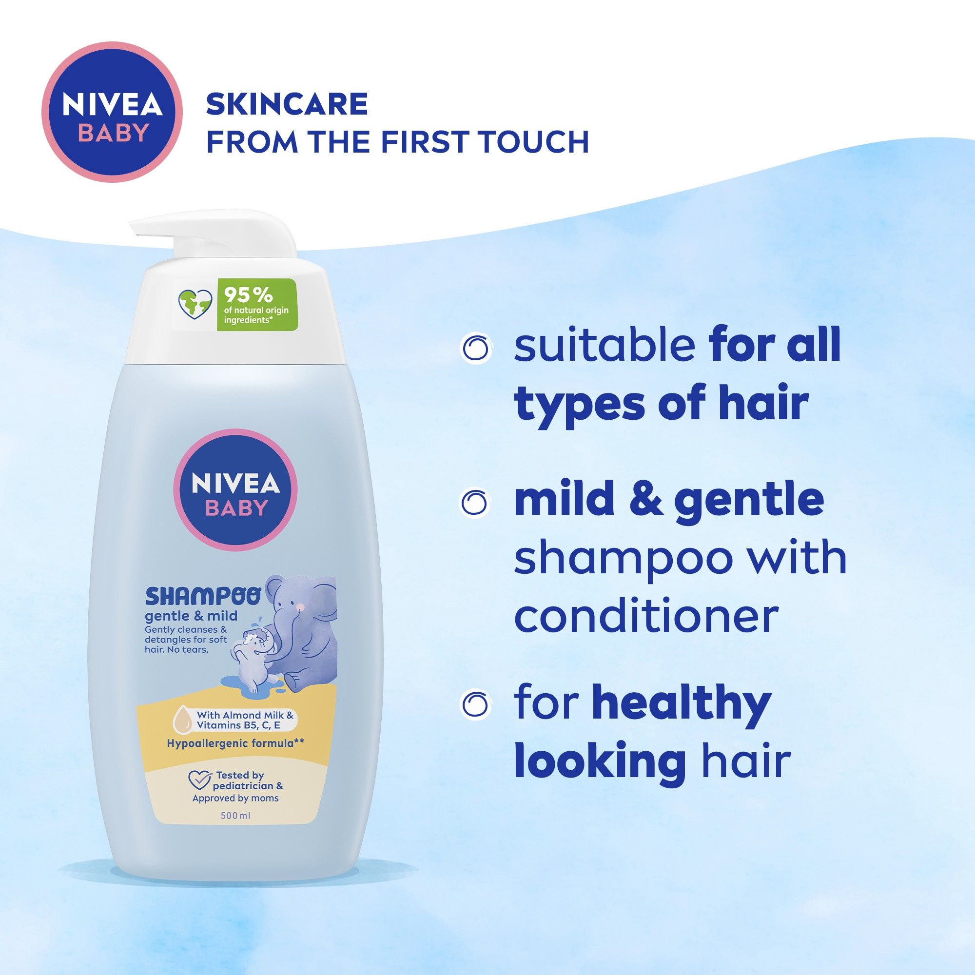 شامبو من نيفيا للأطفال بتركيبة مثالية لبشرة الطفل الرقيقة.
