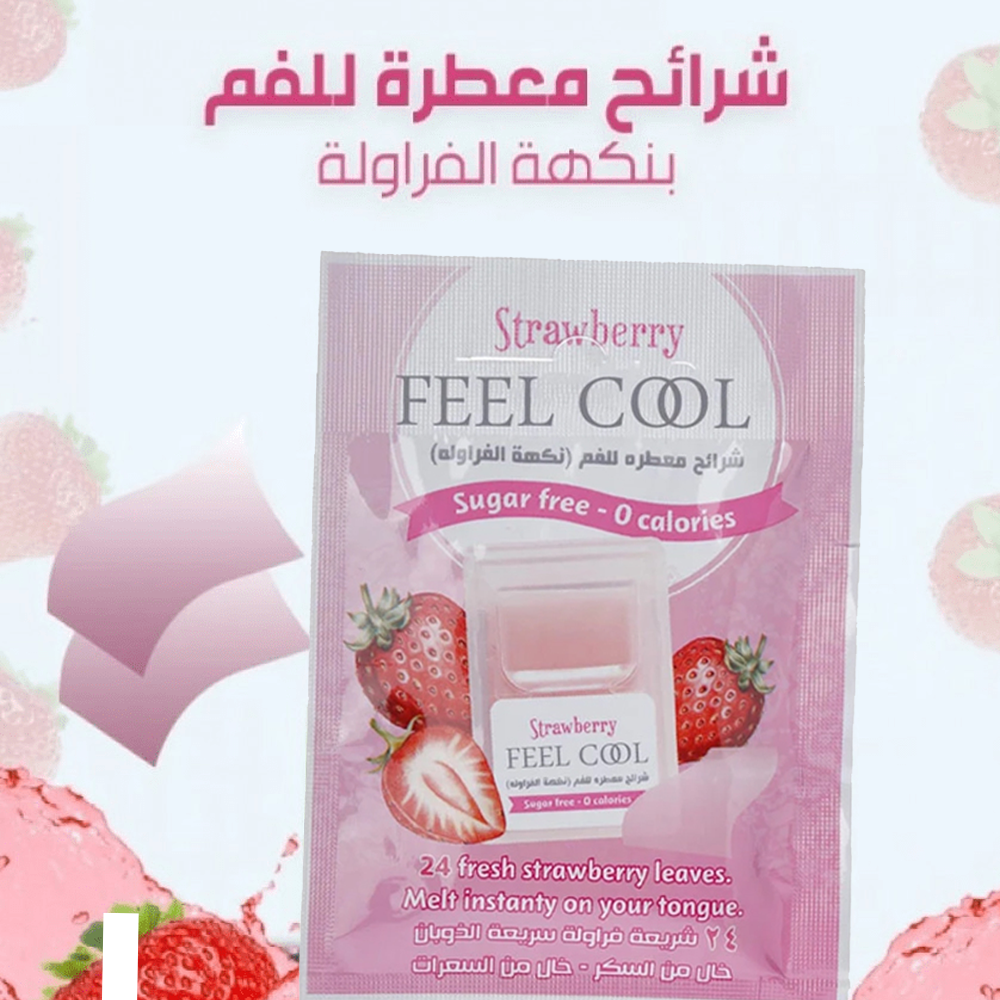 - شرائح بطعم الفراولة للتخلص من روائح الفم الكريهة والتي تسبب الإزعاج.