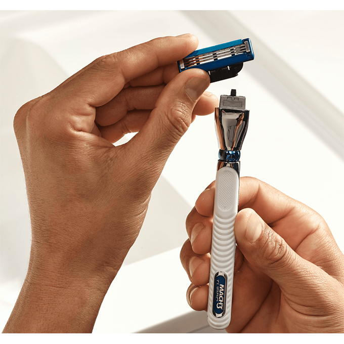 - تمت معالجة الشفرات الثلاث لماكينة جيليت MACH3 Turbo بطلاء متقدم مضاد للاحتكاك.
