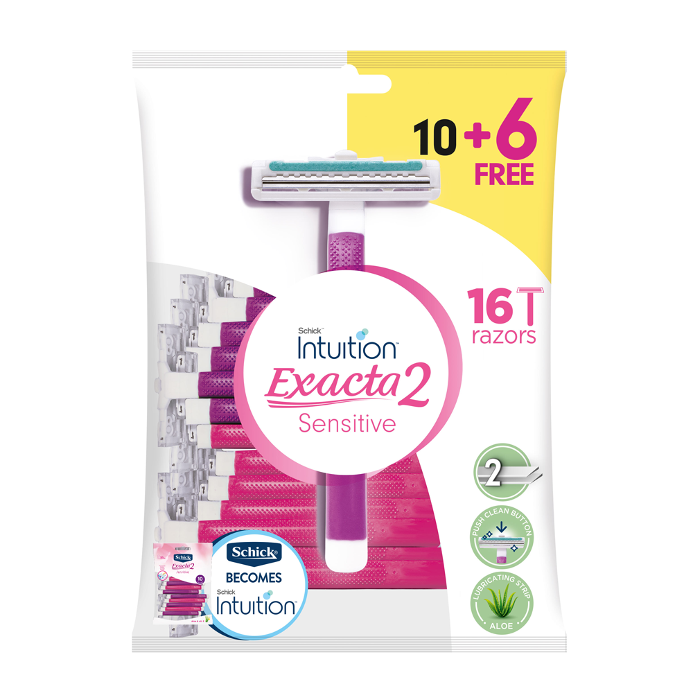 شفرات حلاقة نسائية اكساكتا 2 للبشرة الحساسة من شيك – 10+6 مجانًا