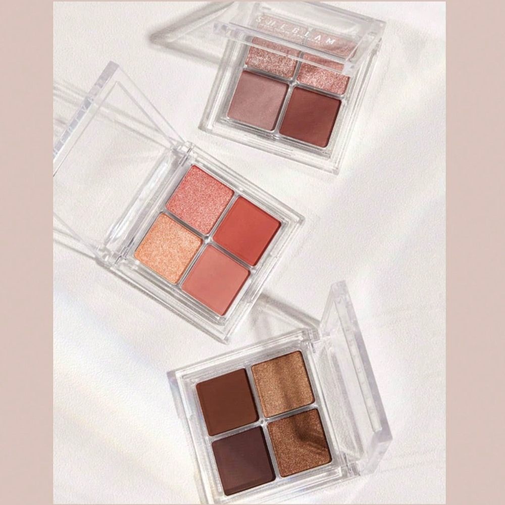 تألقي من الخارج إلى الداخل مع لوحة ظلال العيون المربعة المكونة من 4 ألوان محايدة غير لامعة ولامعة.